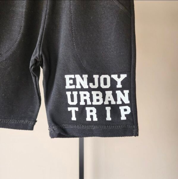 Bermuda de rustico100% algodon con estampado al frente, bolsillos laterales y un bolsillo trasero con detalles de costura y dobladillos.