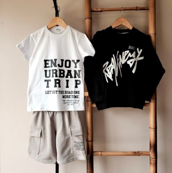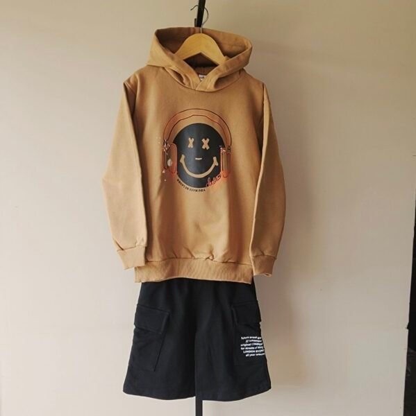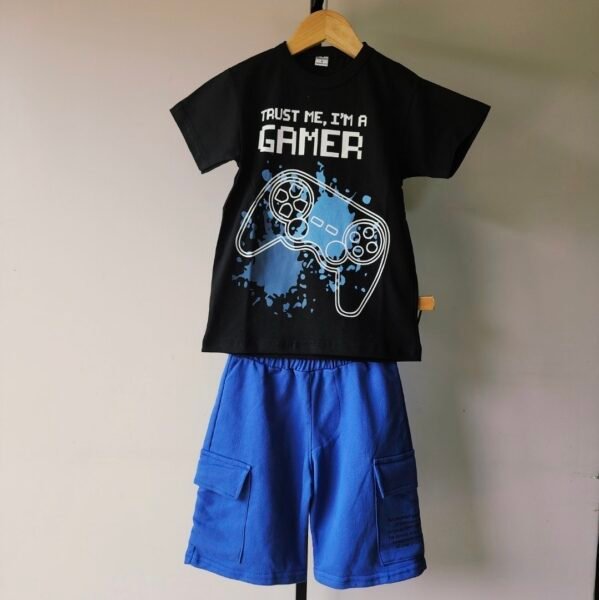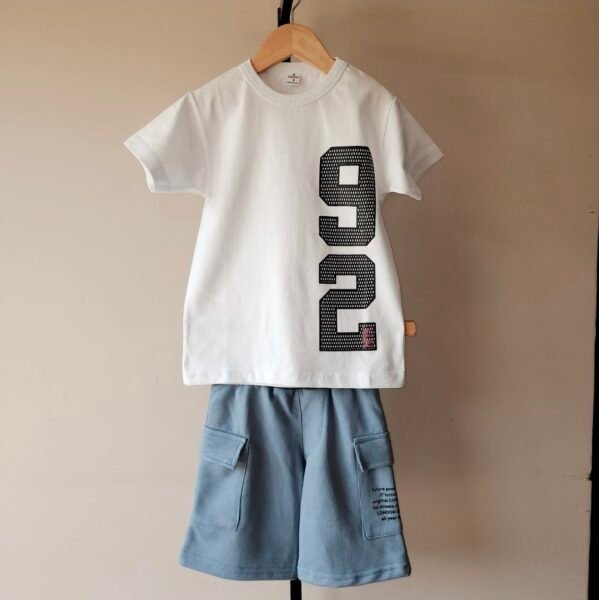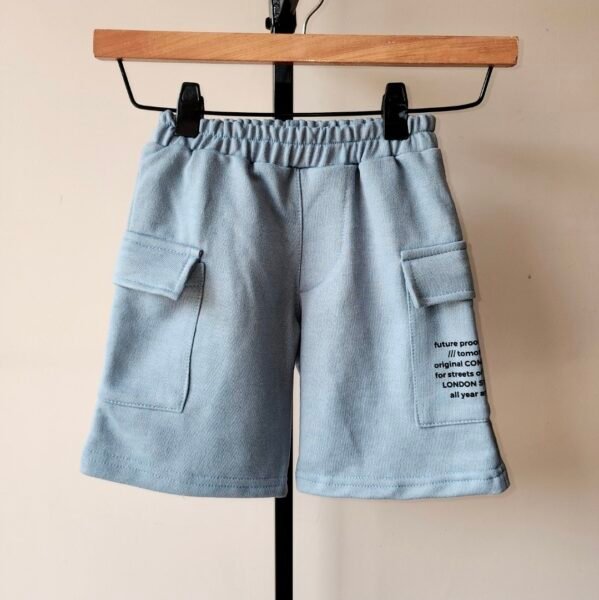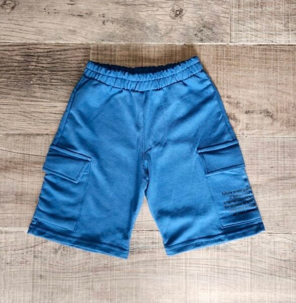 Bermuda de rustico de algodón corte over size, con bolsillos cargo a los costados y uno de ellos estampado.