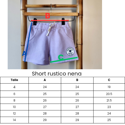 Short de Rustico 100% algodon con elastico en la cintura y moño. Bordado al frente y detalles de costura con el dobladillo hacia afuera.